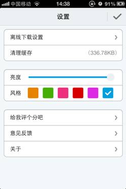 7.设置:点击设置可以对系统的离线管理、风格、亮度进行设置和查看: