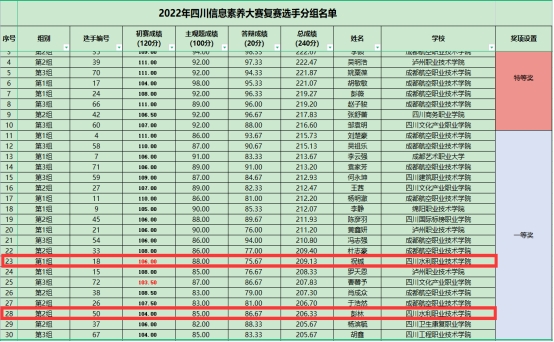 祝铖(冷链2131)与彭林(工程技术2131)同学荣获本年度信息素养大赛省赛一等奖并入围国赛,张妤老师以省赛第三名闯入国赛。这是从刚刚落幕的全国高职院校信息素养大赛四川省选拔赛上传来的好消息。